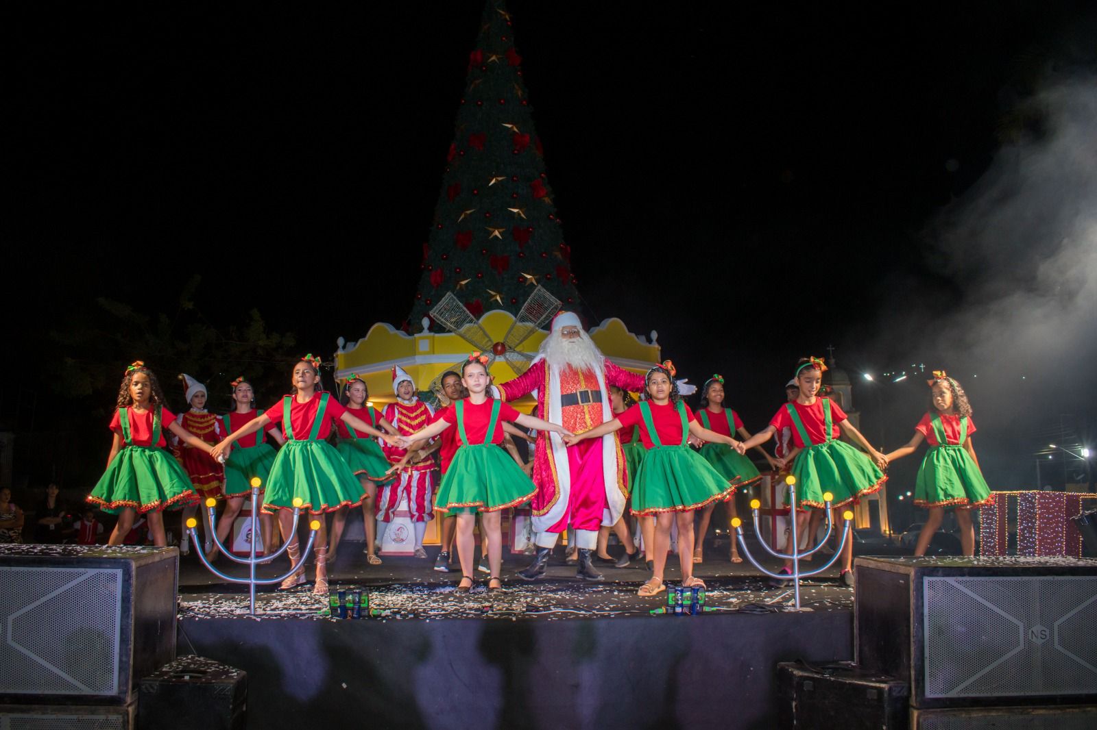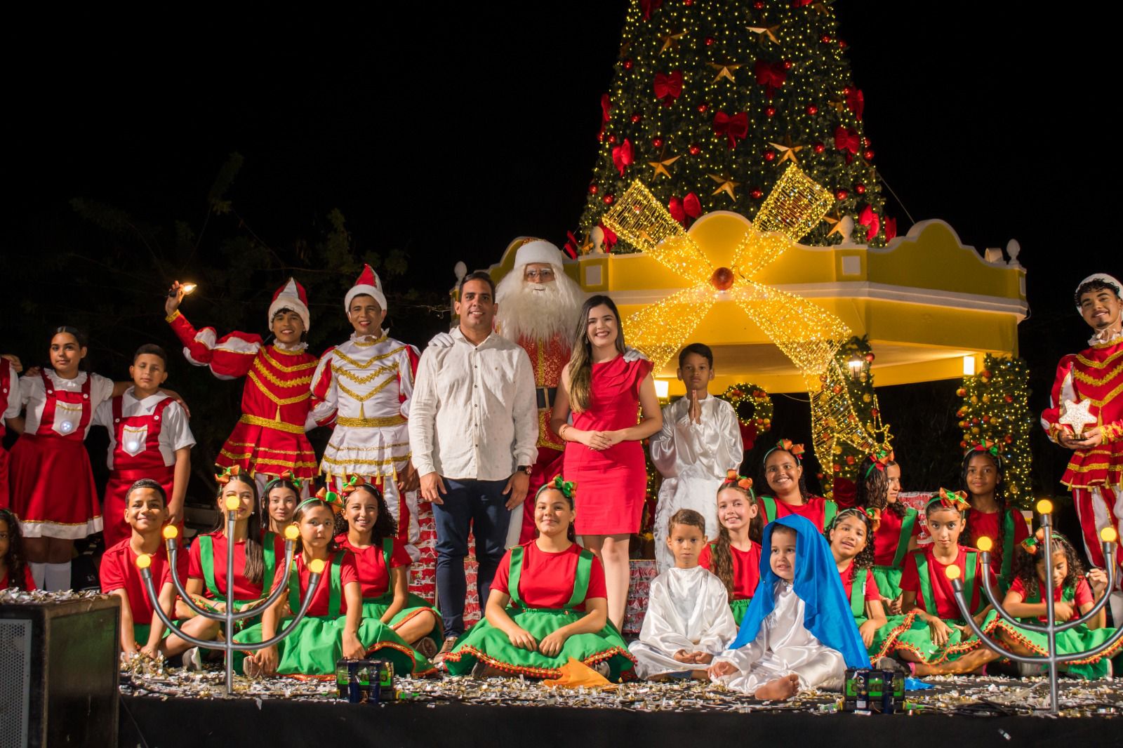 O espetáculo, intitulado “O Presente que Pedro Pediu”, encantou os presentes com uma apresentação musical e teatral que contou a história de Pedro, um menino que aprendeu o verdadeiro significado do Natal.